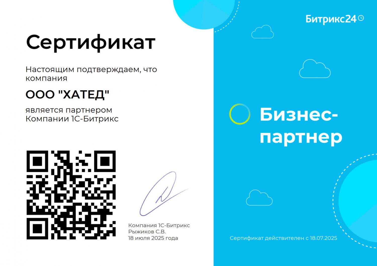 «Бизнес-партнёр „1С-Битрикс24“» — статус компании, который даёт право заниматься направлениями «1С-Битрикс: Управление сайтом» и «Битрикс24».