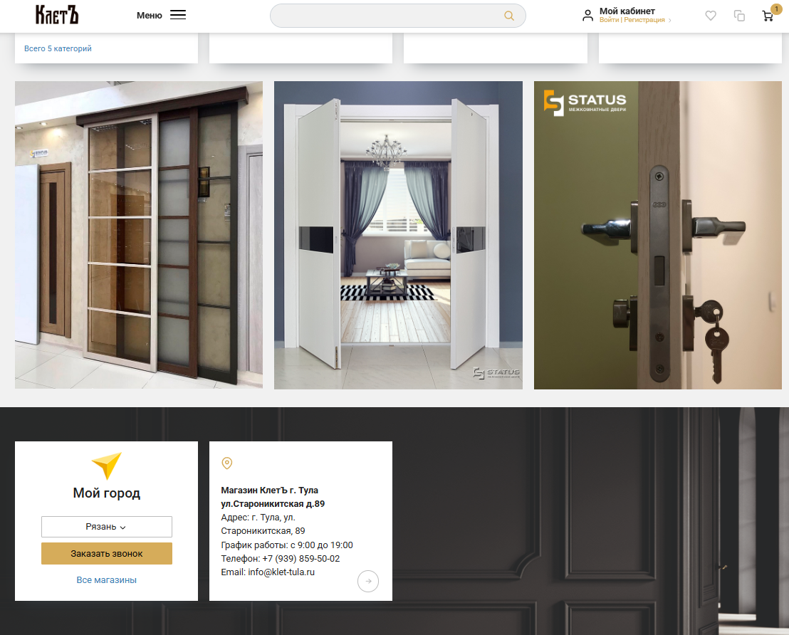 Разработка сайта на 1с Битрикс для Интернет магазина входных и межкомнатных деверей КЛЕТ