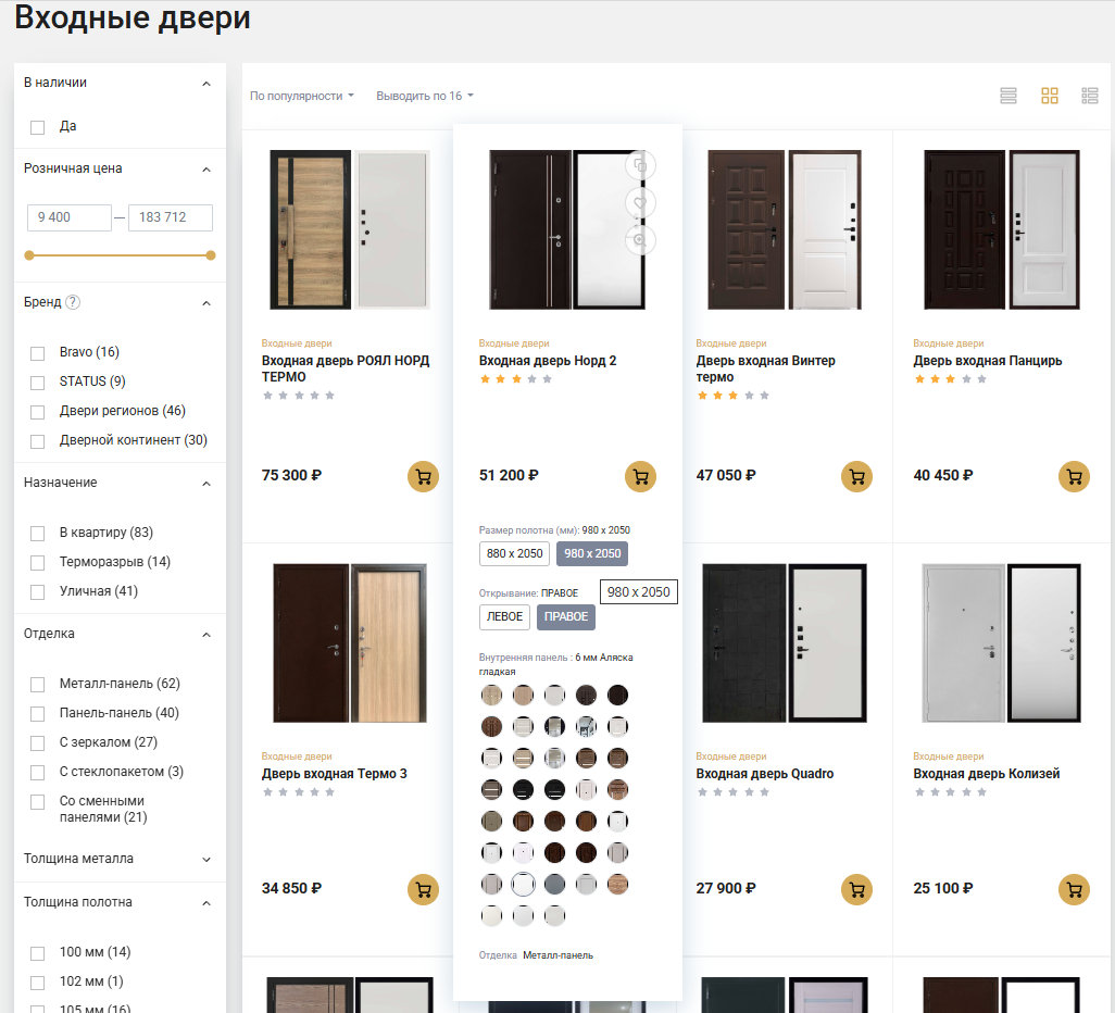 Важным элементом является наличие фильтра по различным категориям, что значительно упрощает выбор подходящей модели двери.