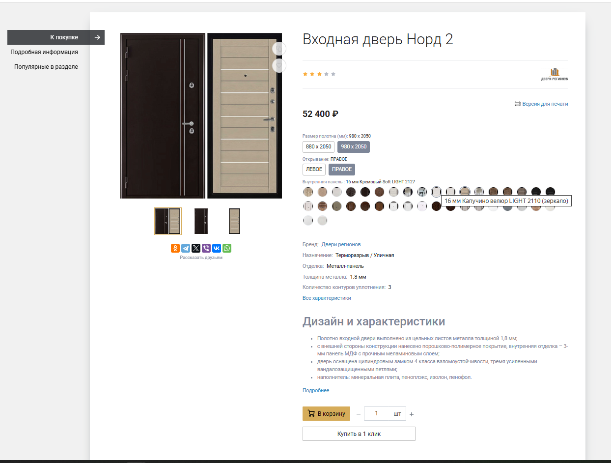 Сайт представляет интернет-магазин с качественно проработанными детальными страницами товаров, на которых выведены основные информация и характеристики товара, приведены технические сведения о продукции.